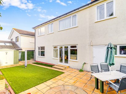 The REAR GARDEN measures approx. 40' in width and commences with paved patio leading to artificial lawn areas. Stone shingle borders. Brick built flower beds. Shed to remain. Gated side access.