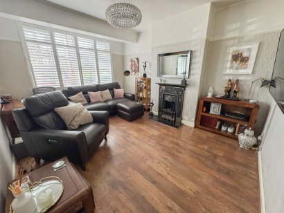 LOUNGE 14' 3" x 11' 5" (4.34m x 3.48m) Double glazed window, with custom fitted shutters, to the front aspect. Feature cast iron fireplace with inset fire. Wood effect flooring. Plastered ceiling. Radiator.