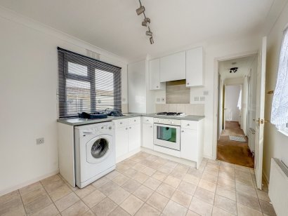 KITCHEN 9' 2" x 9' 2" (2.79m x 2.79m) Double glazed windows to both sides. Base and eye level units incorporating work surface with inset stainless steel sink drainer unit. Integrated electric oven. Gas hob with extractor above. Space and plumbing for washing machine. Tiled splash back. Cupboard housing combination boiler (fitted in 2022) on the Hive system. Radiator. Coving to ceiling. Door to lounge.