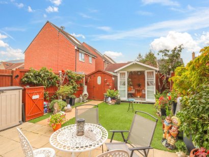 The REAR GARDEN measures approx. 30' and commences with paved patio leading to artificial lawn. Shed and summerhouse to remain. Outside tap. Exterior lighting.