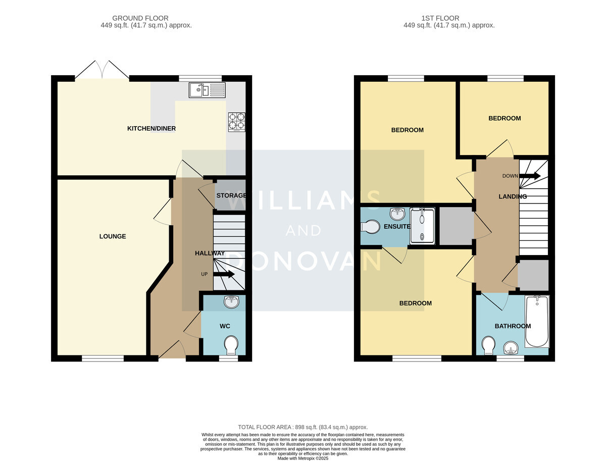 ENSUITE 7' 3" x 3' 10" (2.21m x 1.17m) Skimmed ceiling. Three piece suite comprising close coupled w/c, hand wash basin and shower cubicle with mixer shower. Radiator. Part tiled walls. Extractor fan. Tiled floor.