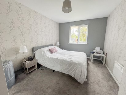 BEDROOM 13' 6" x 9' 6" (4.11m x 2.9m) Double glazed window. Fitted sliding door wardrobe. Plastered ceiling. Electric radiator.