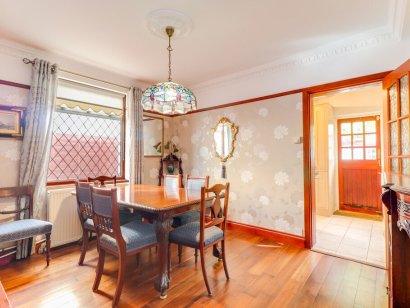 DINING ROOM 12' 2" x 10' 6" (3.71m x 3.2m) Skimmed ceiling. Double glazed window to side aspect. Radiator. Laminate flooring. Door to: