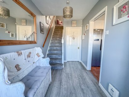 ENTRANCE HALL Stairs to first floor accommodation with under stairs storage. Radiator. Wood effect flooring. Plastered ceiling.