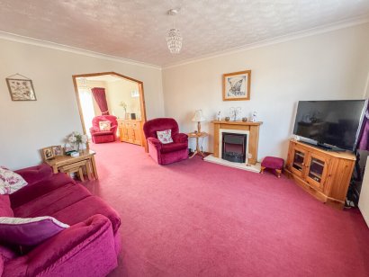 SITTING ROOM 11' x 7' 10" (3.35m x 2.39m) Double glazed patio doors providing access to rear garden. Radiator. Coving to textured ceiling. Archway through to dining room.