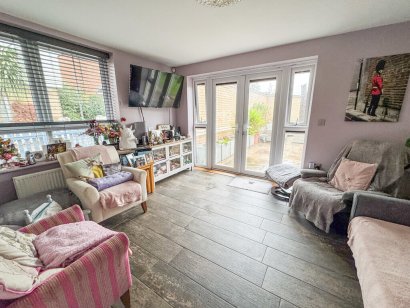 LOUNGE 13' 5" x 11' 3" (4.09m x 3.43m) uPVC double glazed window to side aspect. uPVC double glazed French doors with double glazed side panels providing access to rear garden. Storage cupboard. Tiled wood effect flooring. Radiators.