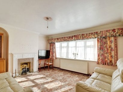 LOUNGE 14' 9" x 12' 6" (4.5m x 3.81m) Coved and skimmed ceiling. UPVC double glazed window to front aspect. Radiator. Feature fireplace.