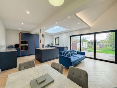 GUIDE £450,000-£475,000 An extended four bedroom semi-detached chalet, improved to a high specification with stunning kitchen/family room with part vaulted ceiling and lantern, luxury bathrooms, approx. 80ft rear garden, outbuilding and own driveway. Walking distance to all amenities. Ref 20493