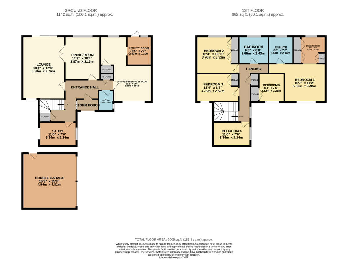 DRESSING ROOM 8' x 7' 3" (2.44m x 2.21m) Double glazed window to the rear aspect. Fitted wardrobes. Radiator.