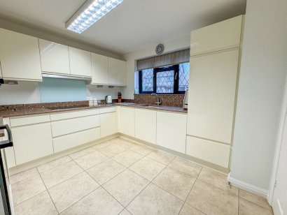 L SHAPED KITCHEN/BREAKFAST ROOM 19' 2" max x 15' max (5.84m x 4.57m) Double glazed window to the front aspect. Double glazed window to the rear aspect. Comprehensive range of modern high gloss base and eye level units. Granite work surfaces with matching upstands. Inset sink with Granite drainer. Integrated twin eye level electric oven. Integrated microwave. Inset Induction hob with extractor above. Integrated dish washer. Full heigh storage cupboard. Tiled floor. Radiator.