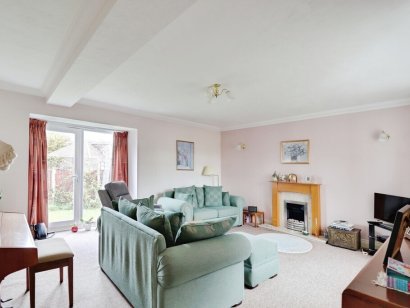 LOUNGE 16' 5" x 15' (5m x 4.57m) uPVC window to front aspect, uPVC french style doors to rear aspect overlooking rear garden, feature fireplace, radiator.