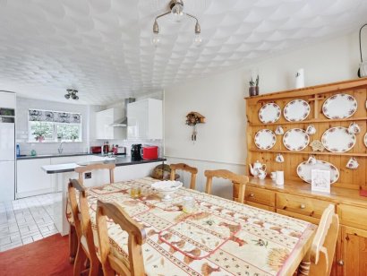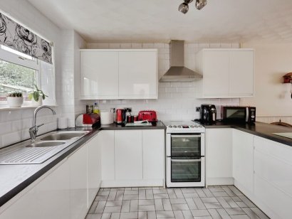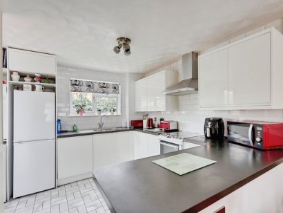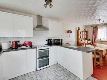 KITCHEN/DINER 21' 2" x 8' 6" (6.45m x 2.59m) UPVC double glazed window to front aspect. Obscure uPVC double glazed door to side aspect providing access to the REAR GARDEN. Range of base and eye level units with square edged working surfaces and tiled splashbacks. Inset stainless steel one and a half bowl sink drainer with chrome mixer tap. Space for gas cooker with extractor hood over. Space for fridge/freezer. Space for washing machine and space for tumble dryer inside full length units. Integrated dishwasher. Radiator. Part tiled floor.