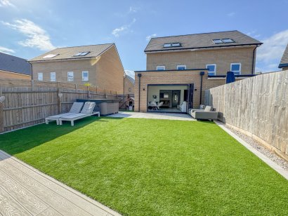 A BEAUTIFULLY LANDSCAPED LOW MAINTENANCE REAR GARDEN measuring approximately 50ft (15.24m) commencing with paved patio area leading to artificial lawn. Further paved patio to the rear with steel framed, powder coated pergola providing stunning outdoor entertaining area. Gate to side providing access to the front.